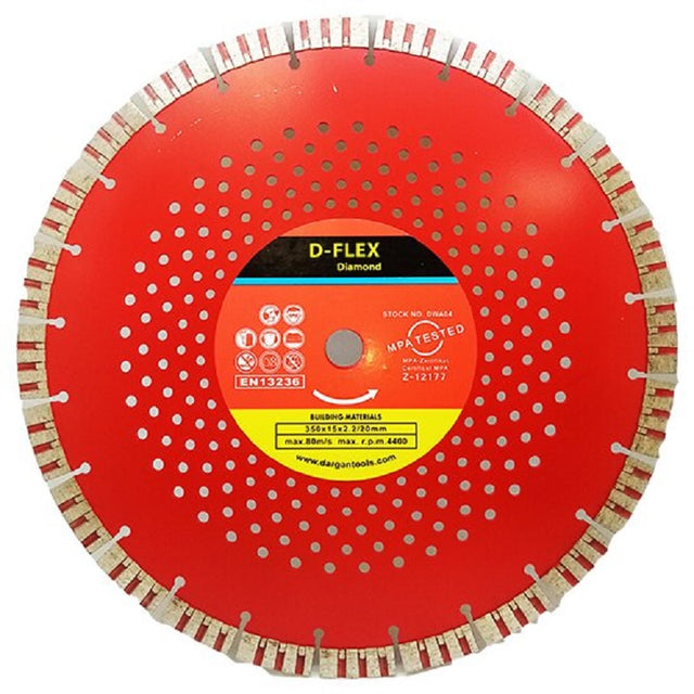 350mm laser D-Flex Diamond Disc 20mm Bore, Laser Welded direct sistered Segments, Used for cutting Building Materials, Concrete, Granite, Marble Brick etc.
