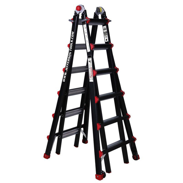 - Easily converts between telescopic ladder, extension ladder and stairway ladder