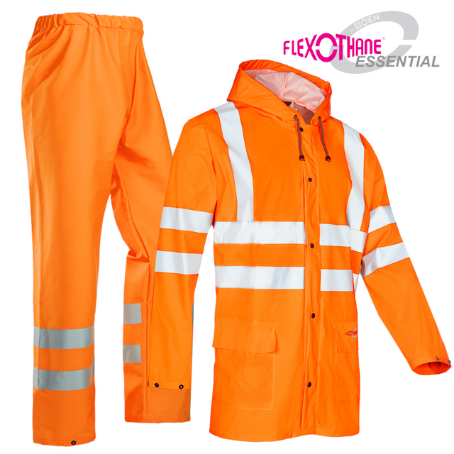 Sioen Eshton Hi-Vis Orange Rain Jacket with Fixed Hood & Bastogne Hi-Vis Rain Trousers