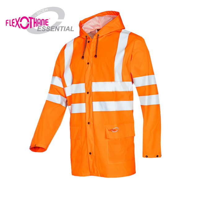 Sioen Eshton Hi-Vis Orange Rain Jacket with Fixed Hood