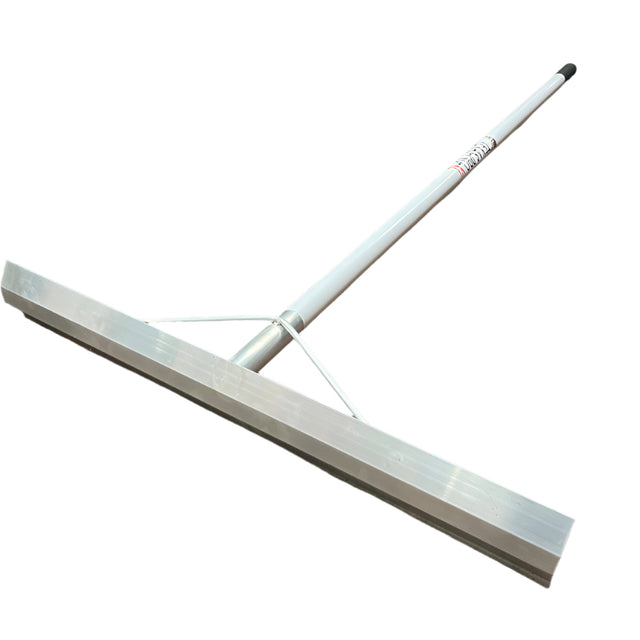 This extra-large light-weight all-alloy straight edge rake/ placer is a fantastic tool for spreading concrete, paving sand or cleaning out stables. The 60 degree blade keeps tool at just the right angle to spread and level concrete or many other materials. The heavy-duty aluminum blade & braces gives added strength.