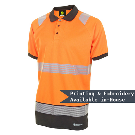 Beeswift Deltic Hi-vis Two Tone Short Sleeve Polo Shirt Orange / Black