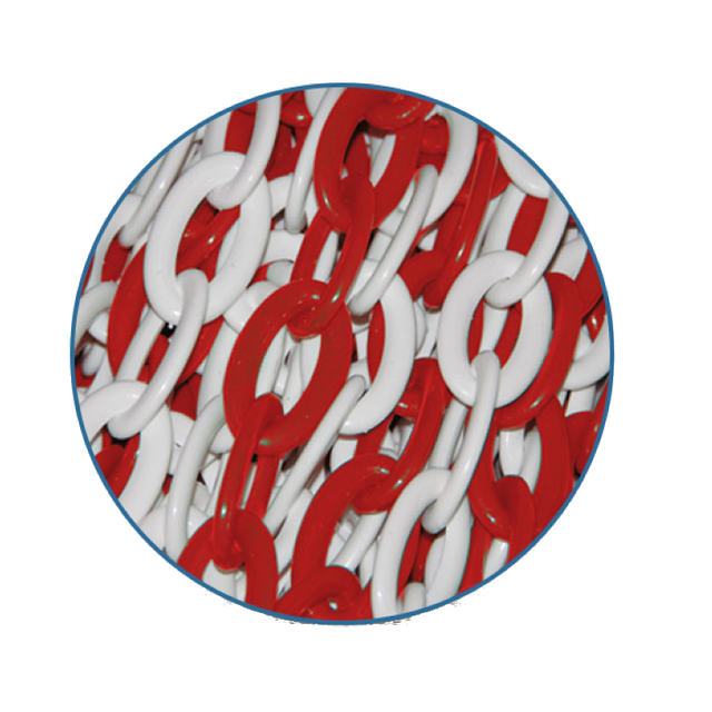 Plastic Red & White Chain made of PP material and can be used between cone delineators and struts. It is made of first class material and has a solid structure. It is easy to see due to the use of two colors. It can also be used by cutting into shorter pieces depending on requirements.