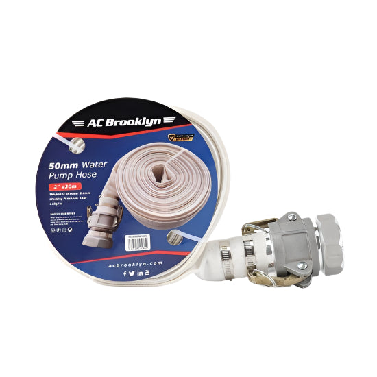 This hose provides a simple space-saving solution being extremely flexible, and able to roll flat. The 20m long hose is 2" and comes with a stainless steel hose clamp, 50mm, with a wing bolt for a tool-free connection.