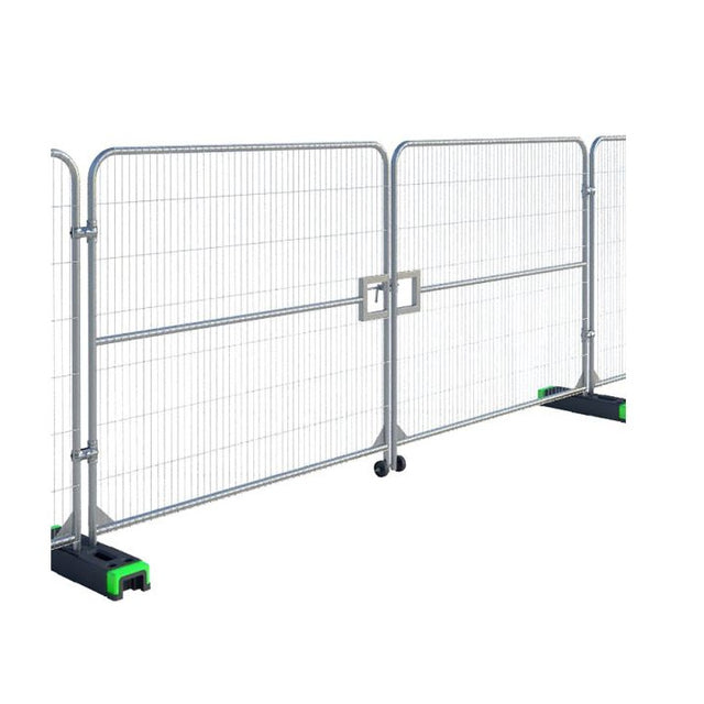The system can be secured with a padlock and chain (sold separately), is used with Fence Feet and Temporary Fencing Couplers as standard, though comes complete with 4no. Temporary Fencing Couplers to secure the gate leaves to the temporary fencing panels on either side.