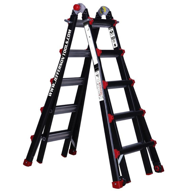 - Easily converts between telescopic ladder, extension ladder and stairway ladder