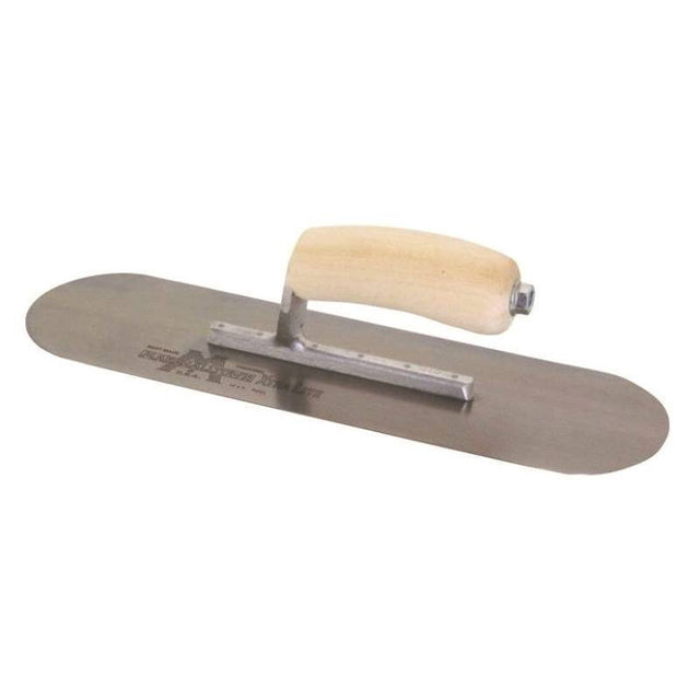 Marshalltown Pool Trowel, Hardened, Tempered Blade, 10 in Blade Length, 3 in Blade Width, Spring Steel Blade, Curved Handle, Wood Handle, Natural Handle.