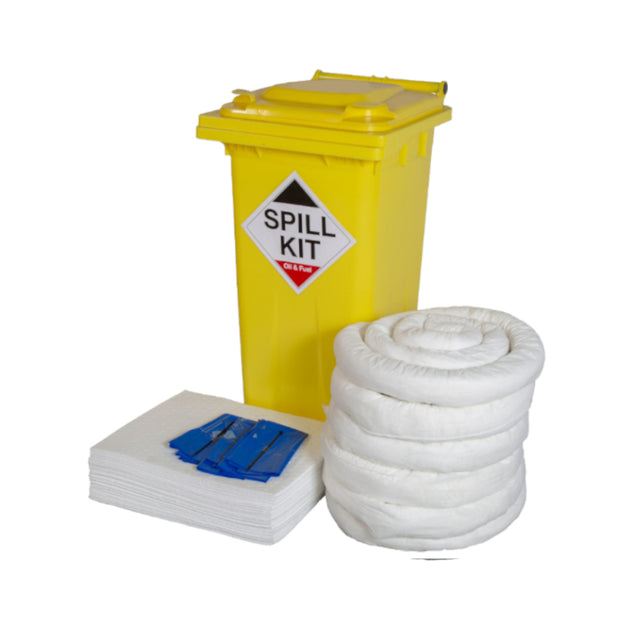OSK120 Oil and fuel spill kit 120L wheelie bin has been specifically designed for areas where potentially large volumes of liquid present spill risks.