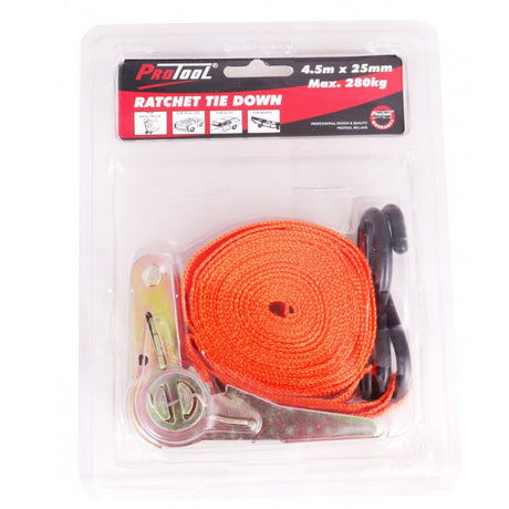 Protool 1 Tonne Ratchet Tie Down 4.5m x 25mm Max 280kg