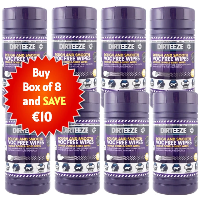 Dirteeze Rough & Smooth wipes have a unique micro-bead surface for increased cleaning power, these wipes are the toughest available.