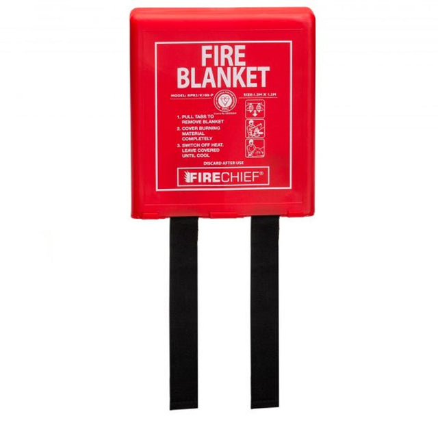 A fire blanket is a safety device designed to extinguish small incipient (starting) fires. It consists of a sheet of fire retardant material which is placed over a fire in order to smother it. These blankets are mounted in vertical quick-release container so that they can be easily pulled out.