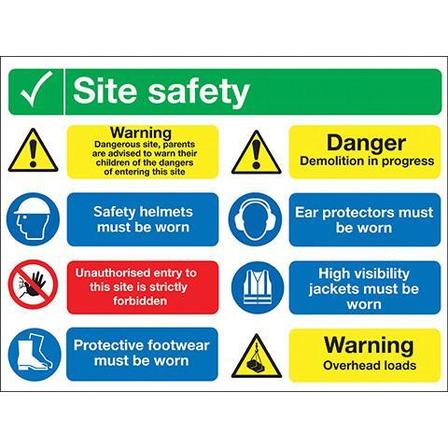 Site Safety Sign with 8 panels of information pictograms printed onto 1.2mm rigid polypropylene.