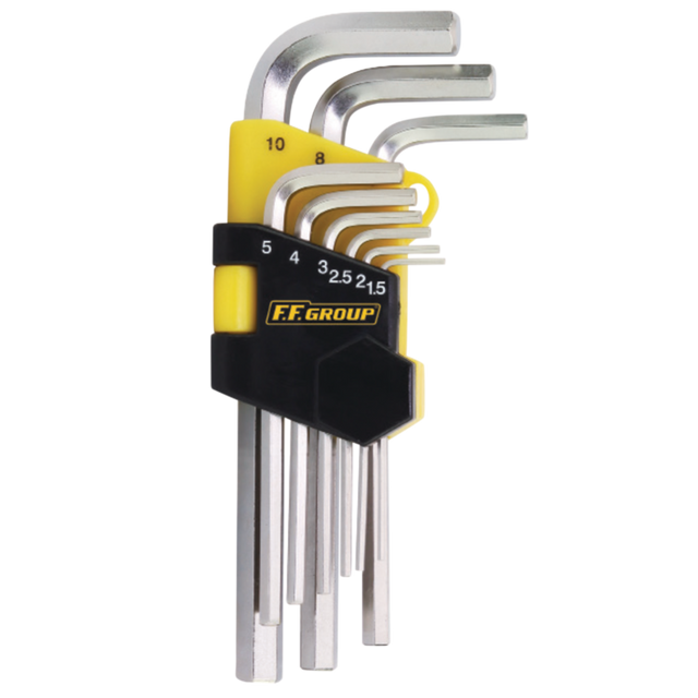 9-piece FF Group Long Hex Key Set. Made from Chrome Vanadium steel for high strength and durability.